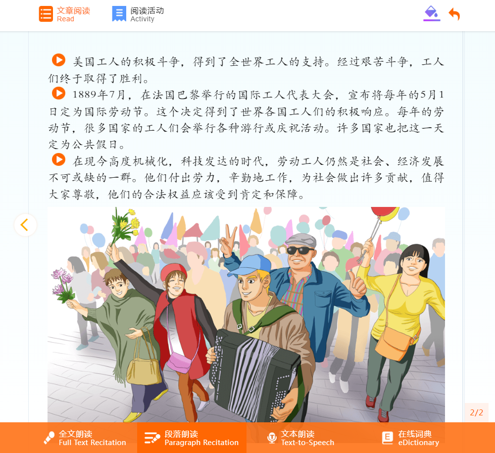 The topics in the series are diverse, with rich content and vibrant illustrations. It emphasizes readability, storytelling, and the acquisition of knowledge. This approach stimulates students' interest in reading, fosters reading habits, guides them to explore new worlds through reading, and allows them to experience the joy of reading. The series also includes online dictionary and text-to-speech features to facilitate independent and efficient reading, making reading accessible to all. Additionally, post-reading activities are provided to enhance students' reading comprehension skills and effectively elevate their reading proficiency.