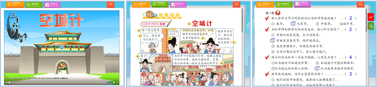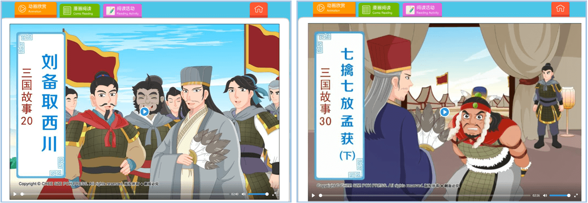 Currently, The stories available include “Three Kingdoms Story (Part 1 and 2)”, “Thirty-Six Stratagems”, “The Patriot Yue Fei”.